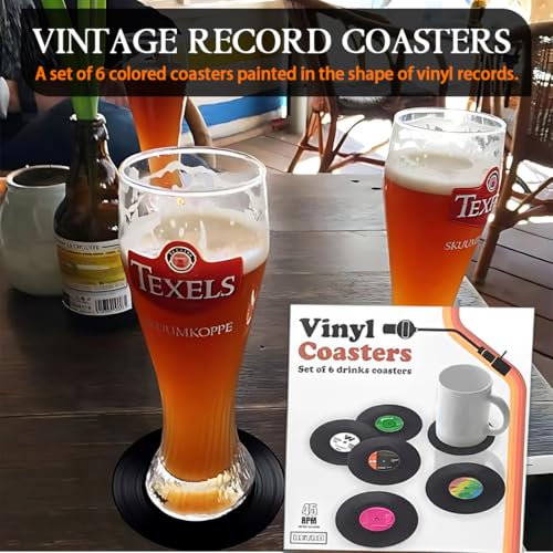 AUEFUDQ Lot de 6 sous-verres en Vinyle : Un Voyage au Coeur du Rétro