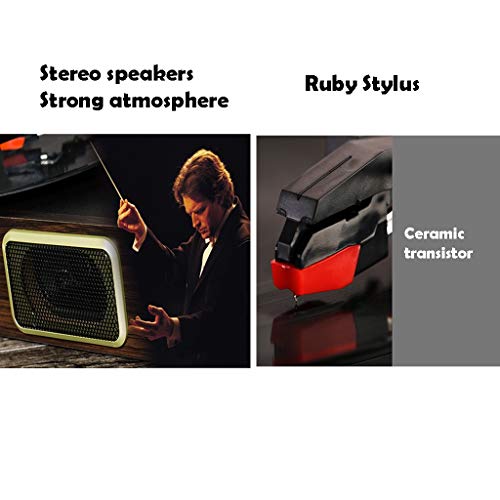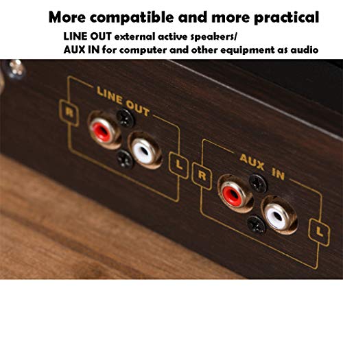 【Phonographe multifonction】 Le tourne-disque dispose d’une prise auxiliaire de 3,5 mm pour connecter un téléphone intelligent, une chaîne stéréo ou tout autre lecteur audio numérique pour écouter de la musique. Vous pouvez également connecter d’autres haut-parleurs externes pour écouter de la musique via la sortie RCA et la prise casque